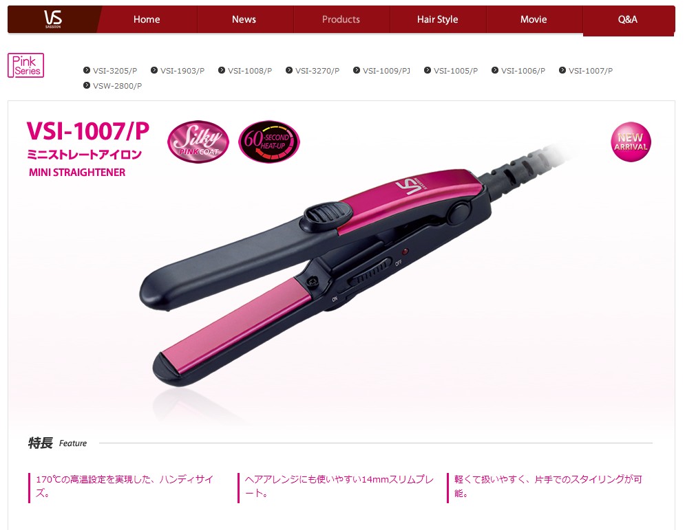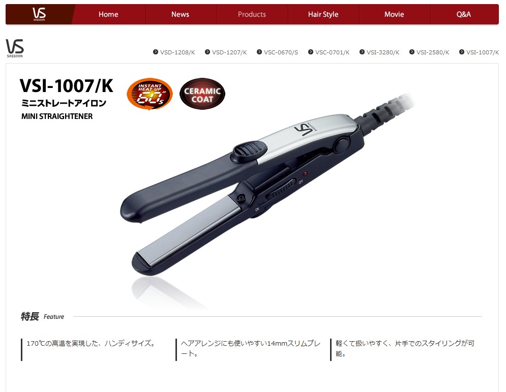 ストレートアイロン ランキング  ≫ ヴィダルサスーン ≫ ヴィダルサスーン ミニストレートアイロン VSI-1007/P VSI-1007/K